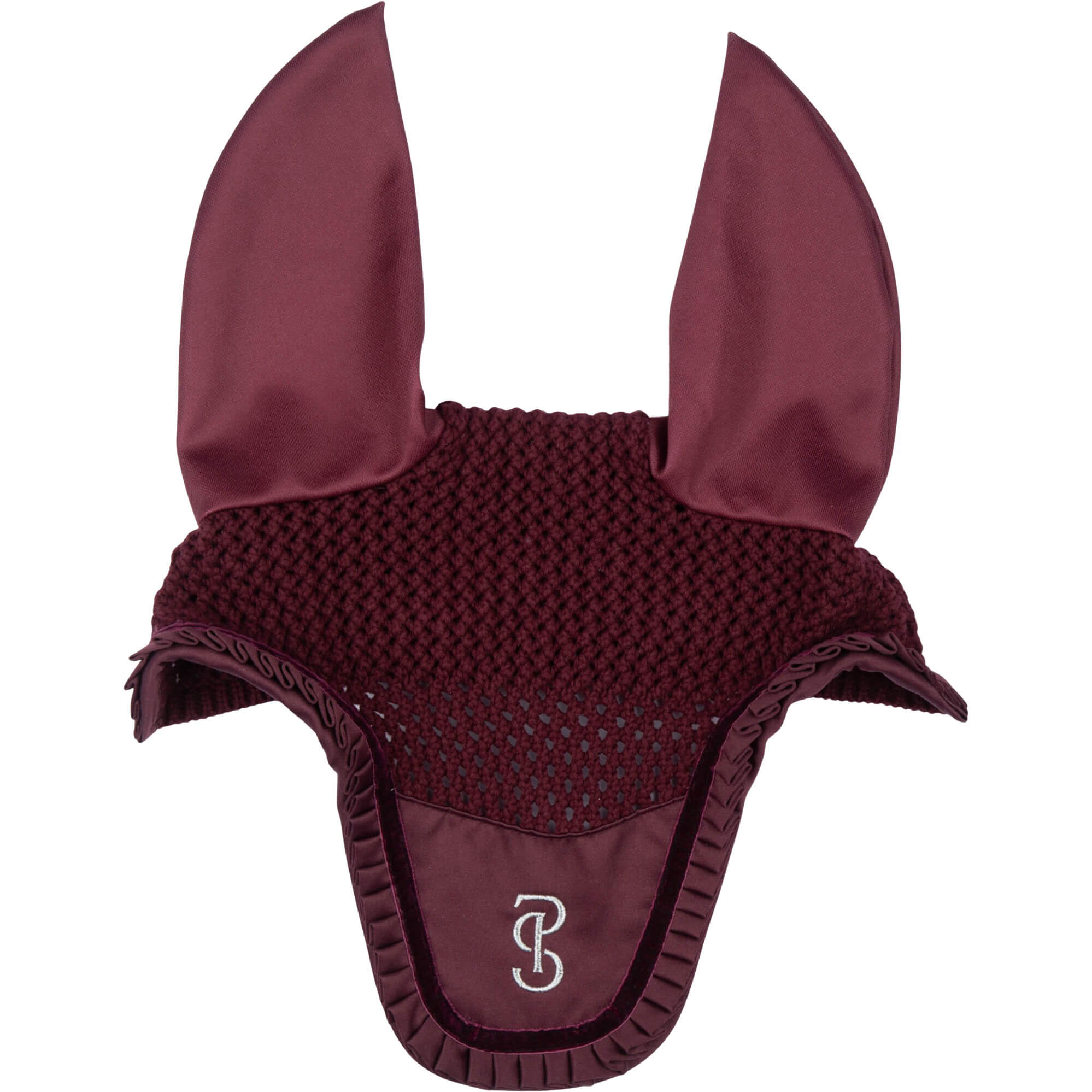 - with a satin flap, pearl trim and elasticated ears