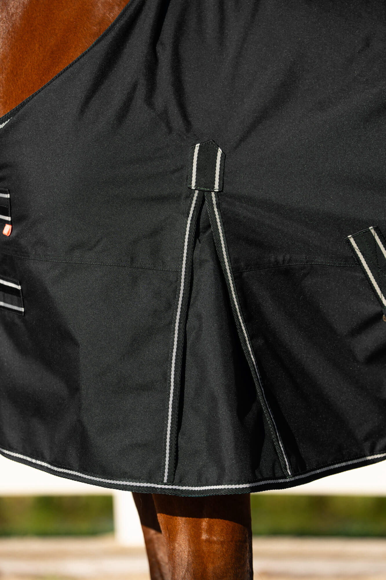 - a double T-chest closure and adjustable cross straps keep the rug in place