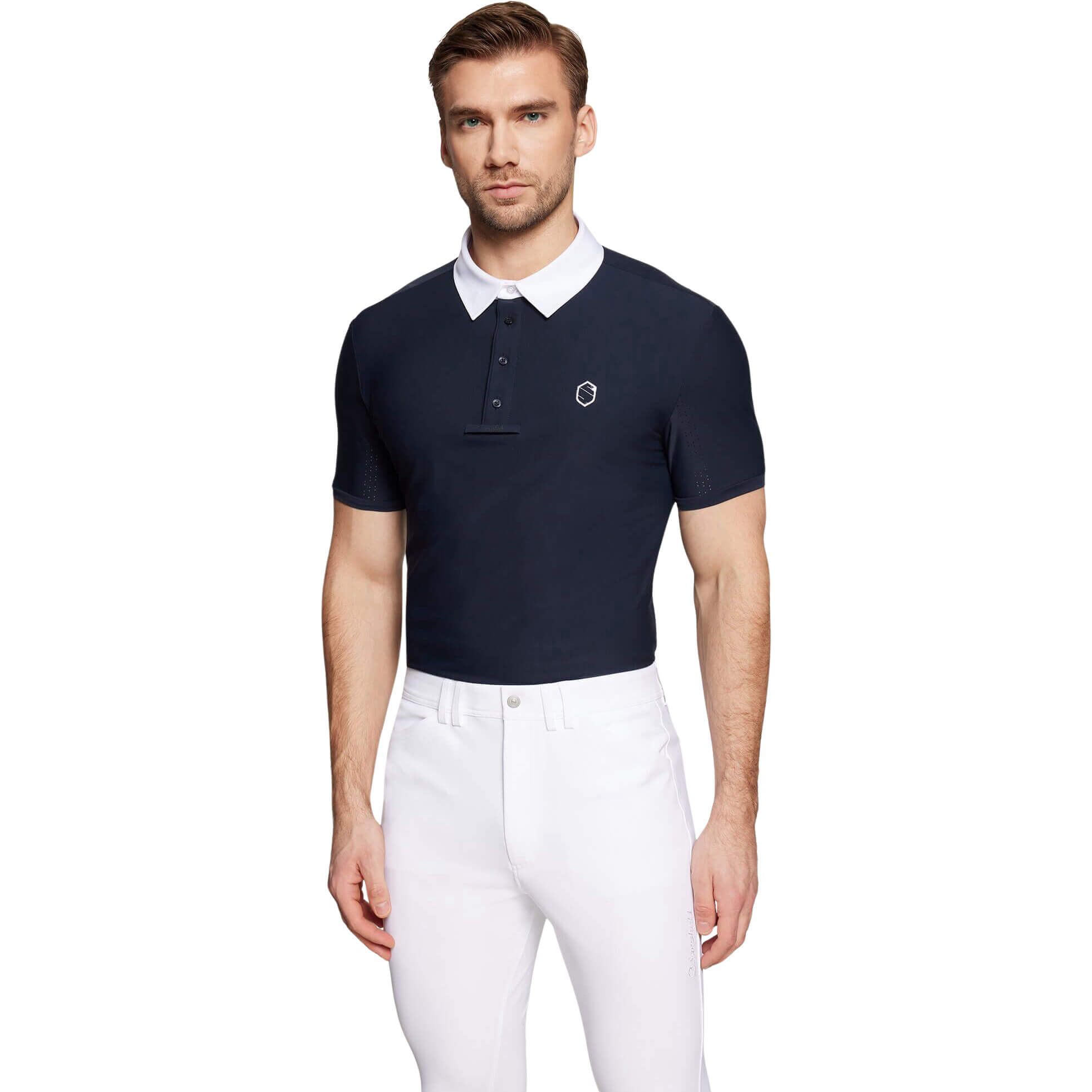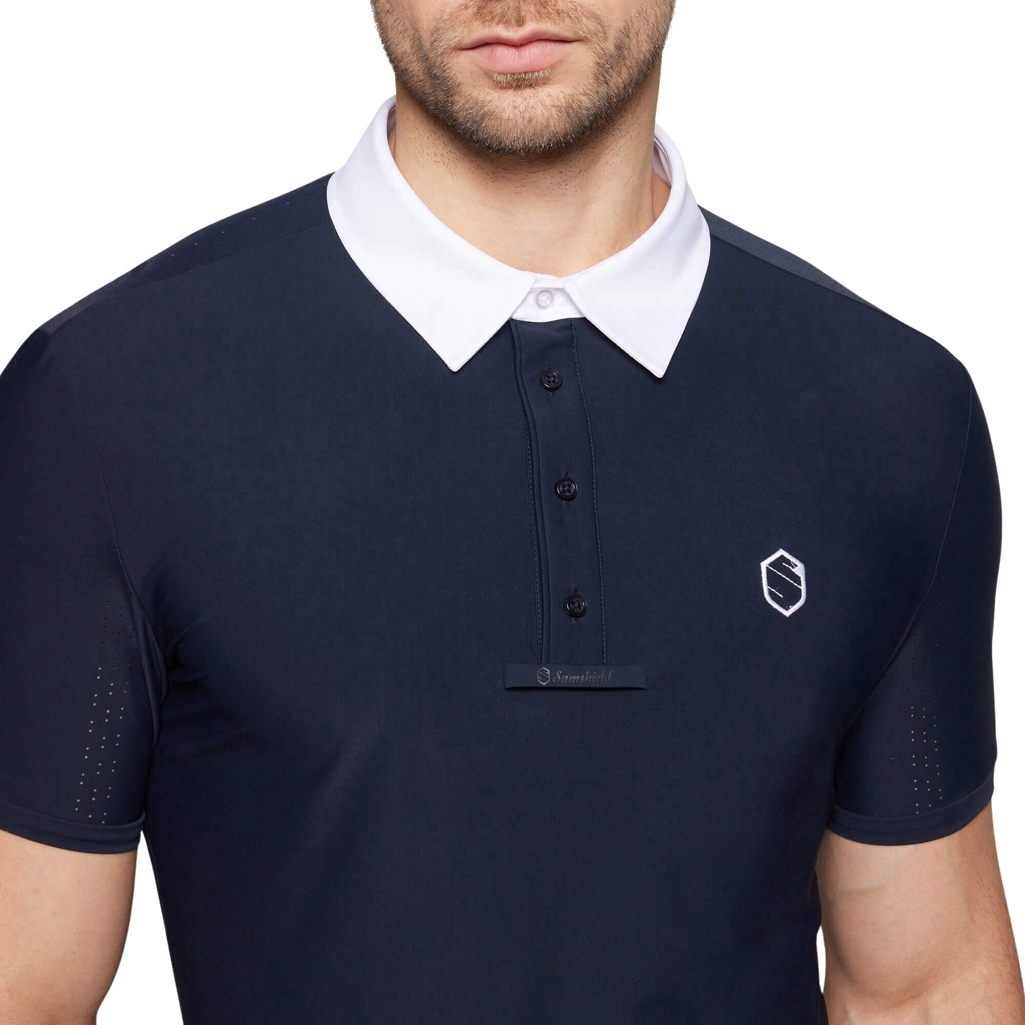 - with embroidered Samshield emblem for a sporty, elegant look