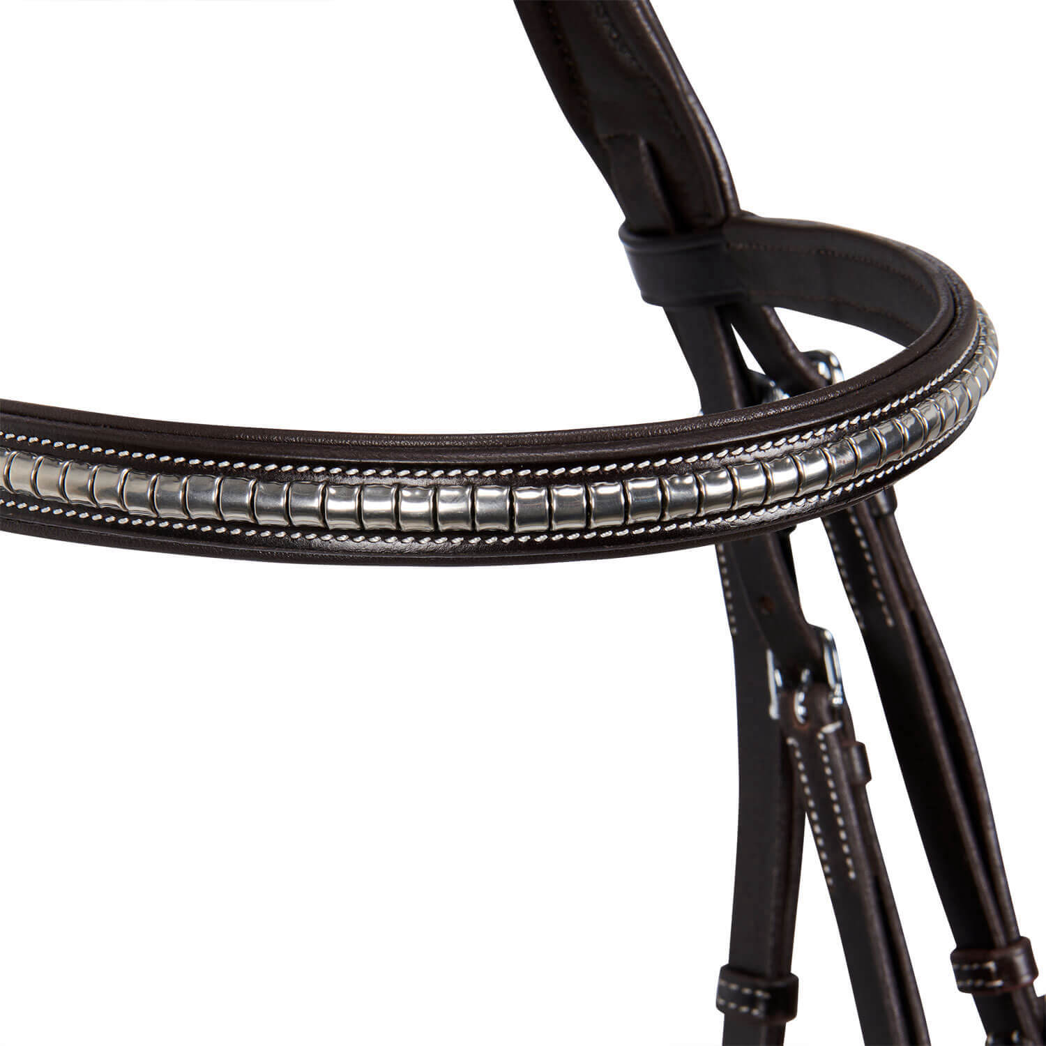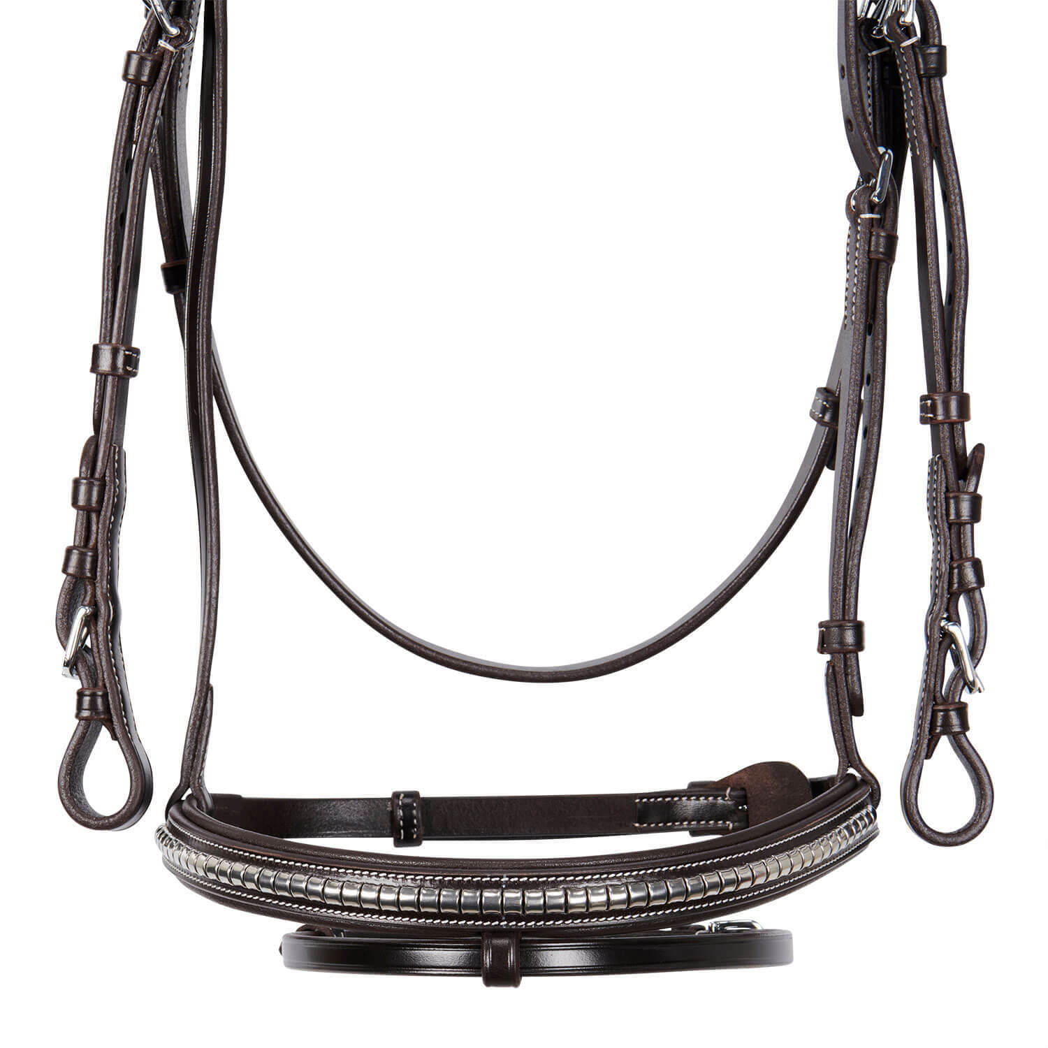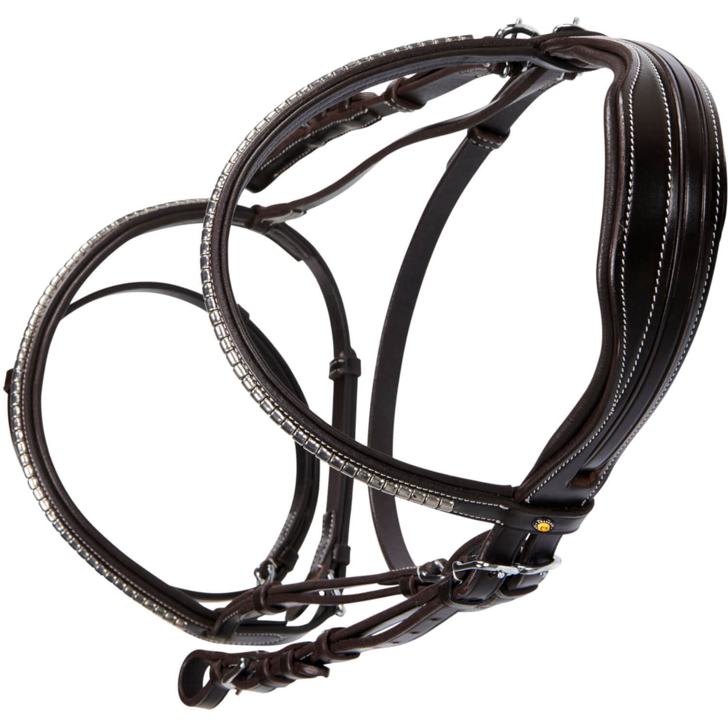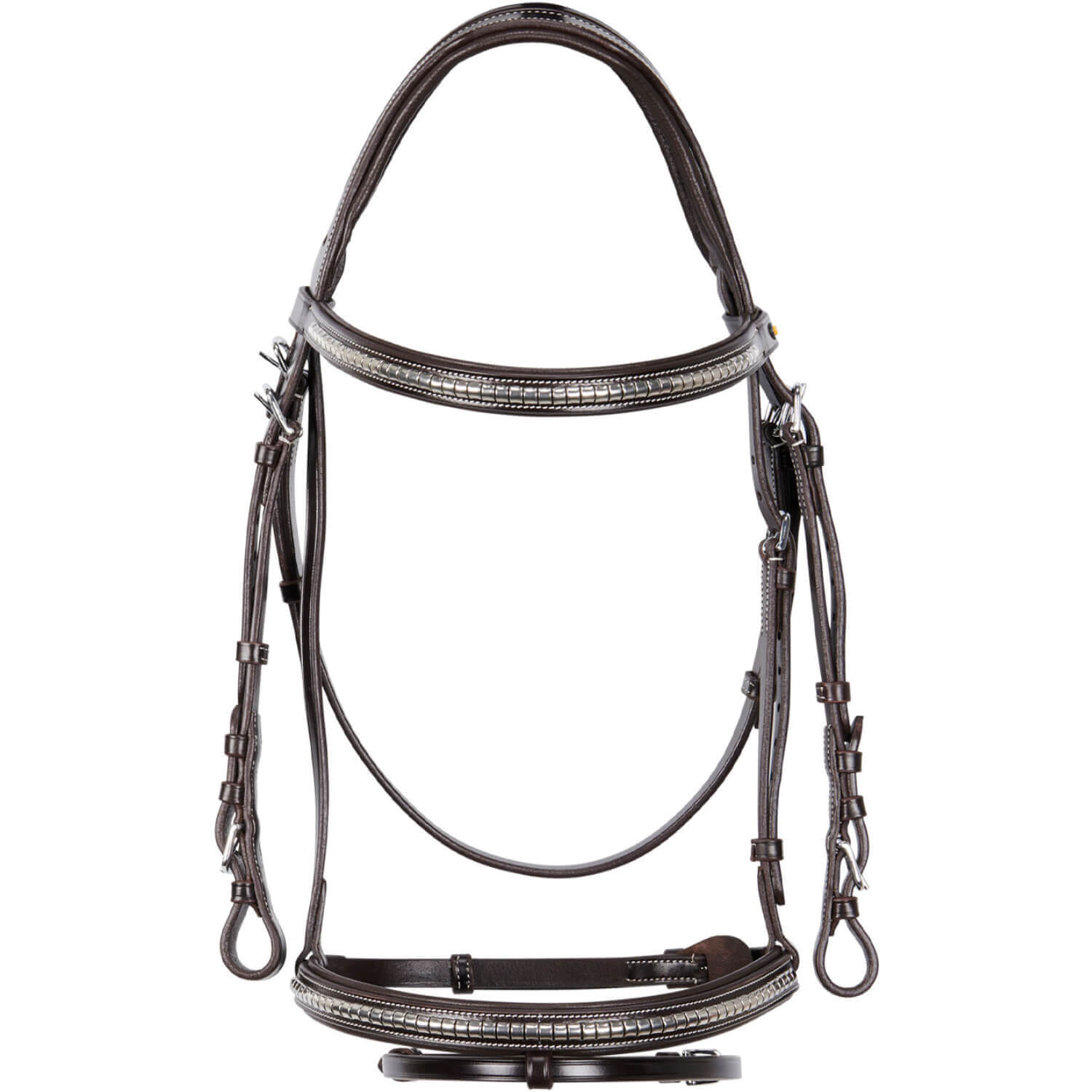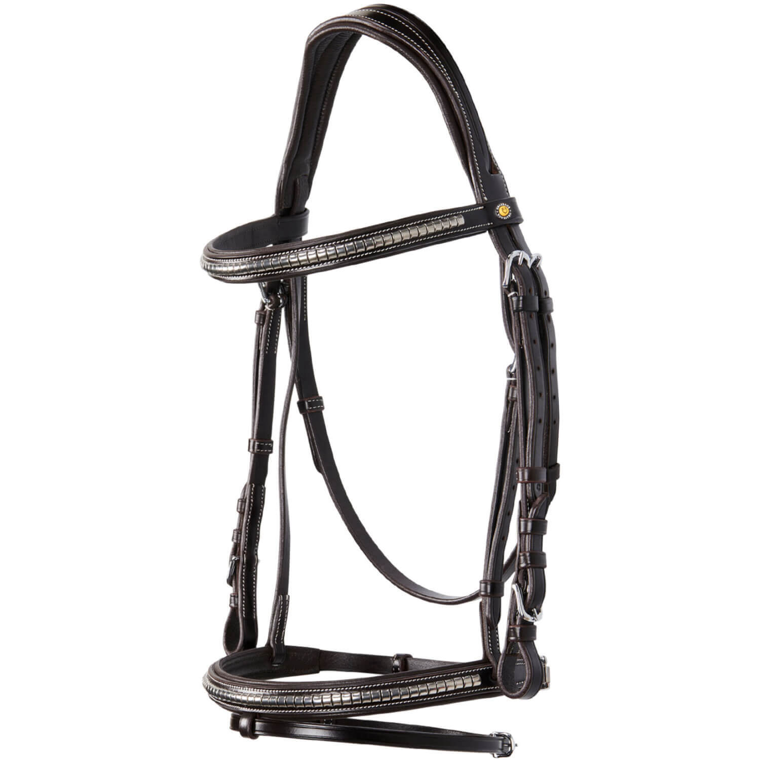 - padded browband and noseband, decorated with clincher and metal plate with Equestro logo