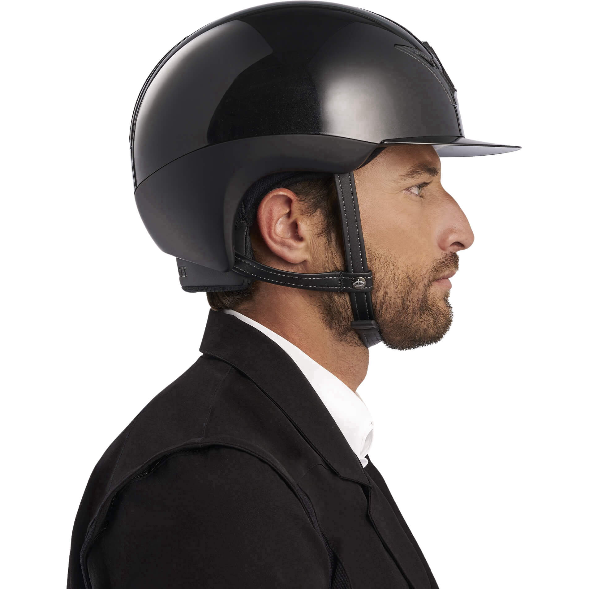 - locking strap made of synthetic leather attached to the helmet core at three points